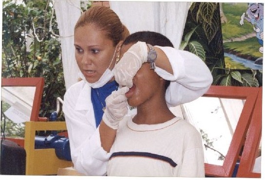 Descrição: | Fotografia em cores onde é possível visualizar uma mulher passando fio dental nos dentes de uma criança. No fundo da imagem aparecem espelhos. No verso da foto contém as seguintes informações “BC- Semana de Qualidade de Vida; Mila T. Dez. 2001”. |