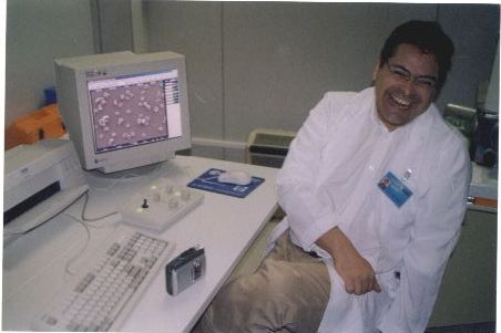 Description: Fotografia em cores do médico Luis carlos Arraes. No verso das fotos consta um adesivo da ASCOM com as seguintes informações: “ASSESSORIA DE COM SOCIAL – UFPE; Nome: Luis C. Arraes; Evento/Pessoa: Vacina Aids; Fotógrafo: Rafael Alves”; 12/04