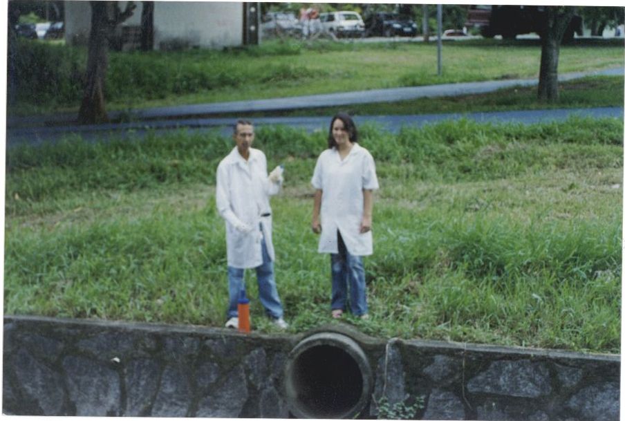 Keywords: Área externa; Água; Pesquisadores; LIKA; Coleta de água para analise.; Córrego