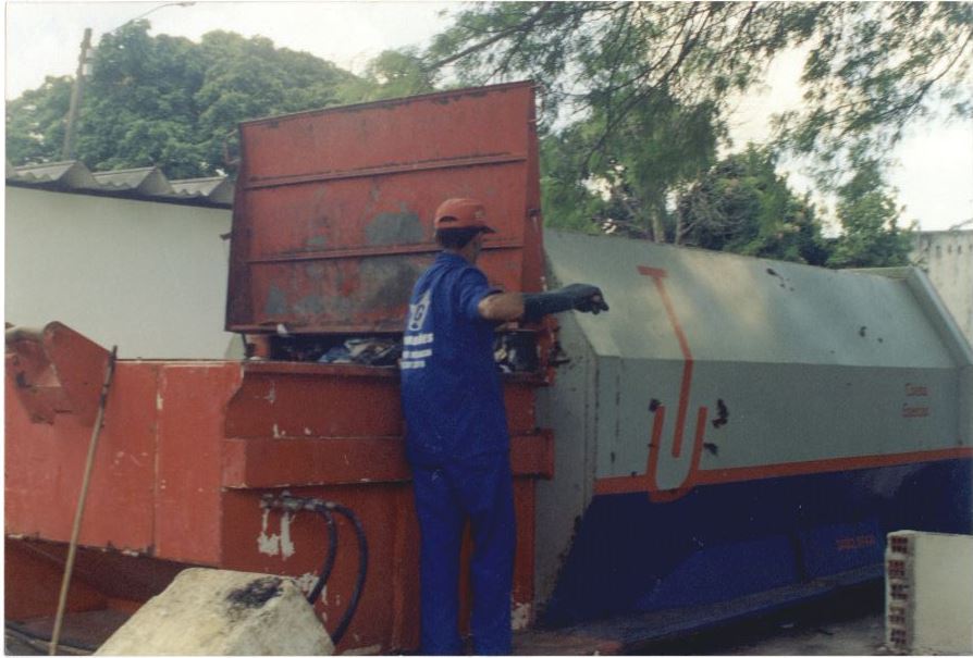 | Description: | Fotografia em cores onde é possível visualizar um funcionário manuseando um compressor de lixo. No fundo da imagem consta também partes de árvores. Funcionário manuseando o compressor de lixo ; No verso da foto consta um adesivo da ASCOM com a seguinte informação: "Assessoria de Com. Social - UFPE; Nome: Lixo – UFPE compressor; Evento/Pessoa; Fotógrafo: Juliana Albuquerque”. |