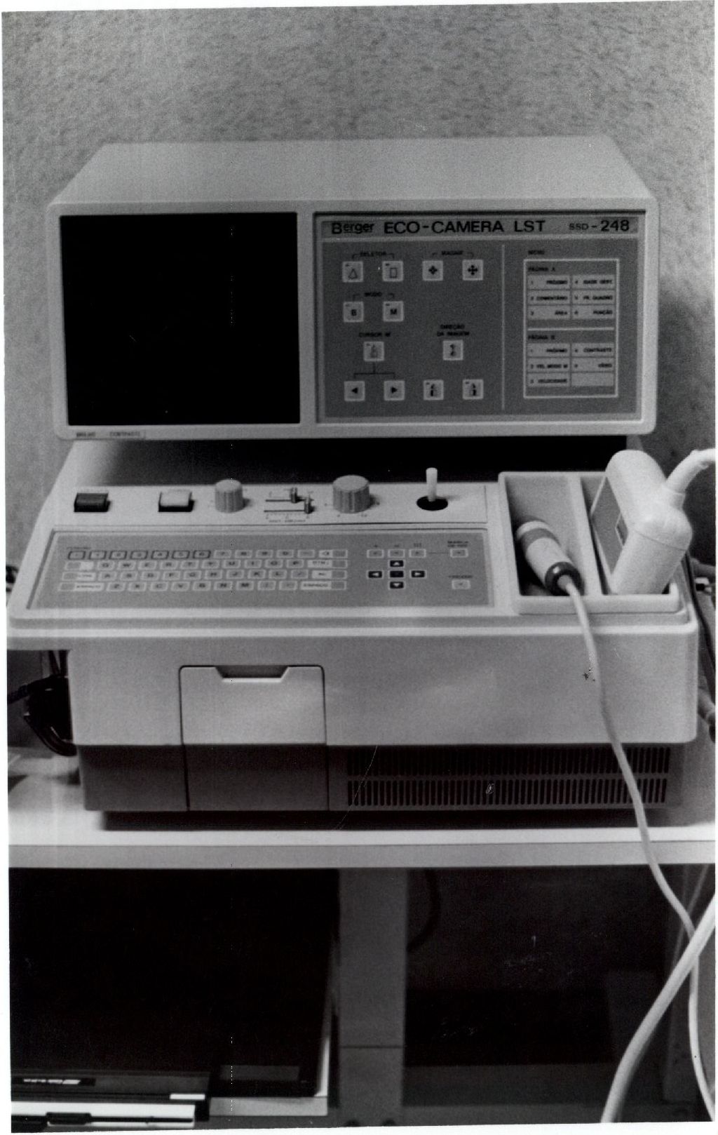 Description: Fotografia em preto e branco dos equipamentos do HC. No verso das fotos consta a seguinte informação datilografada: “Foto – Lima Filho (Passarinho) 18/07/89; Hospital das Clínicas”.
