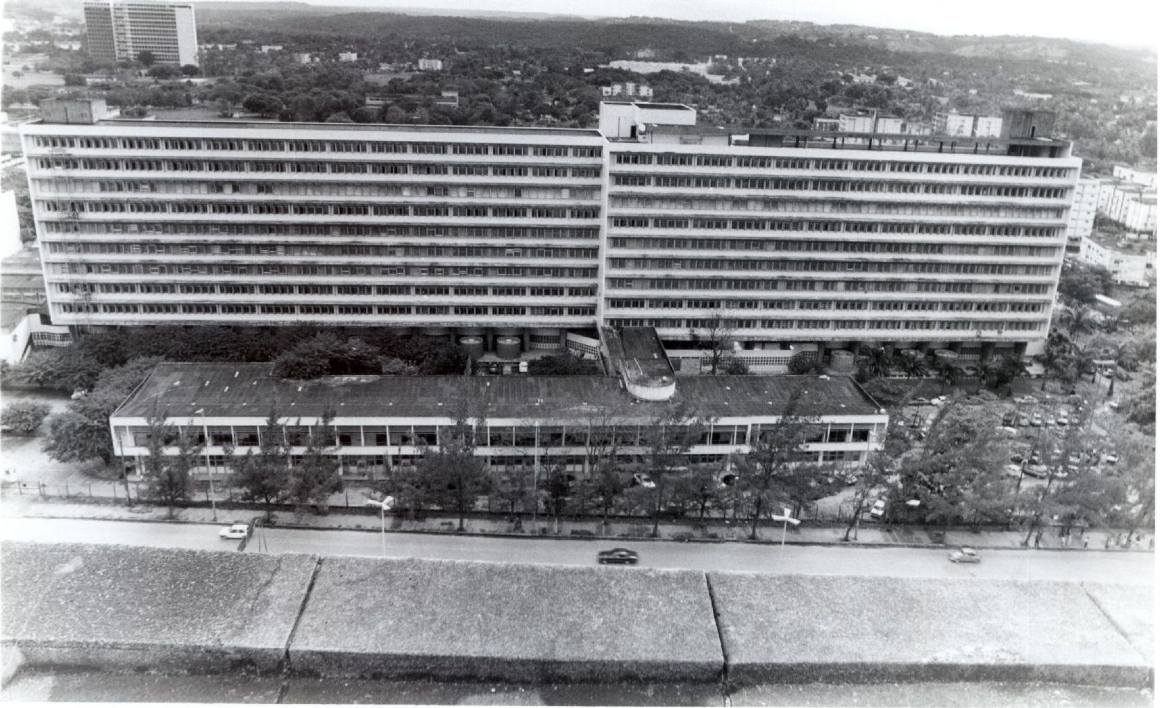 | Descrição: | Fotografia em preto e branco da fachada do Hospital das Clínicas |