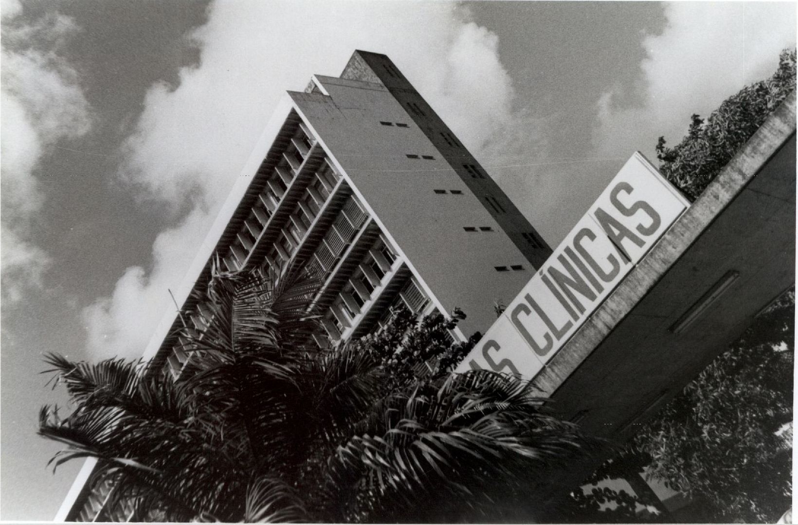 | Descrição: | Fotografia em preto e branco da fachada do Hospital das Clínicas |
