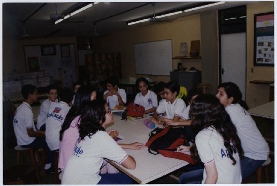 Descrição: | Fotografia em cores onde é possível visualizar um grupo de alunos participando de uma aula ministrada por uma personalidade não identificada. No verso da foto consta um adesivo da ASCOM com as seguintes informações: “Assessoria de Com. Social – UFPE; Nome:; Evento/Pessoa: Alunos - CAP; Fotógrafo: Bernardo Cortijo; 16/02/06”. |
