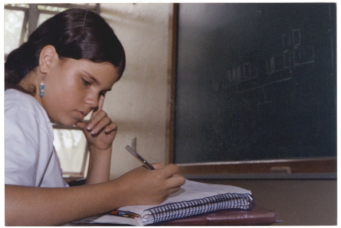 Descrição: | Fotografia em cores onde é possível visualizar uma jovem em momento de estudo em uma aula de matemática. No verso da foto consta um adesivo da ASCOM com as seguintes informações: “Assessoria de Com. Social – UFPE; Nome; Colégio Aplicação; Evento/Pessoa: Pesquisa em matemática; Fotógrafo: Bárbara Wagner; 06.03.02”. |