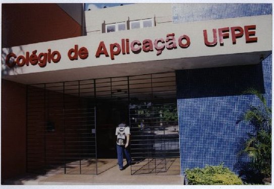 Descrição: | Fotografia em cores onde é possível visualizar a fachada do Colégio de Aplicação. No verso da foto há um carimbo com as seguintes informações: “ASSESSORIA DE COM. SOCIAL – UFPE;Nome; Evento/Pessoa: Alunos – CAP; Fotógrafo: Bernardo Cortizo”. |