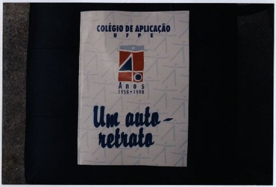 Descrição: | Fotografia em cores onde é possível visualizar uma capa de livro com os seguintes dizeres “Colégio de Aplicação; UFPE; Anos 1958-1998; Um auto-retrato”. |