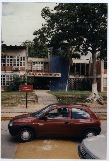 Descrição: | Fotografia em cores onde é possível visualizar a fachada do Colégio de Aplicação, bem como um carro que, no momento da fotografia, passava em frente ao prédio. |