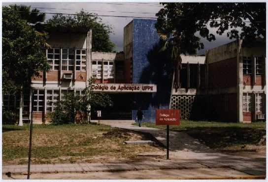 Descrição: | Fotografia em cores onde é possível visualizar a fachada do Colégio de Aplicação.No verso da foto consta a seguinte informação à caneta “ 15 – Colégio de Aplicação”. |