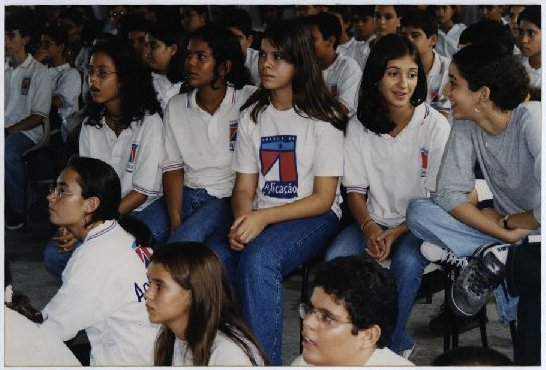 Descrição: | Fotografia em cores de alunos sentados na platéia na apresentação do Coral Norte Americano. No verso da foto consta a seguinte informação à caneta: “Coral Norte Americano CA/ Mila targino Março 2001” |