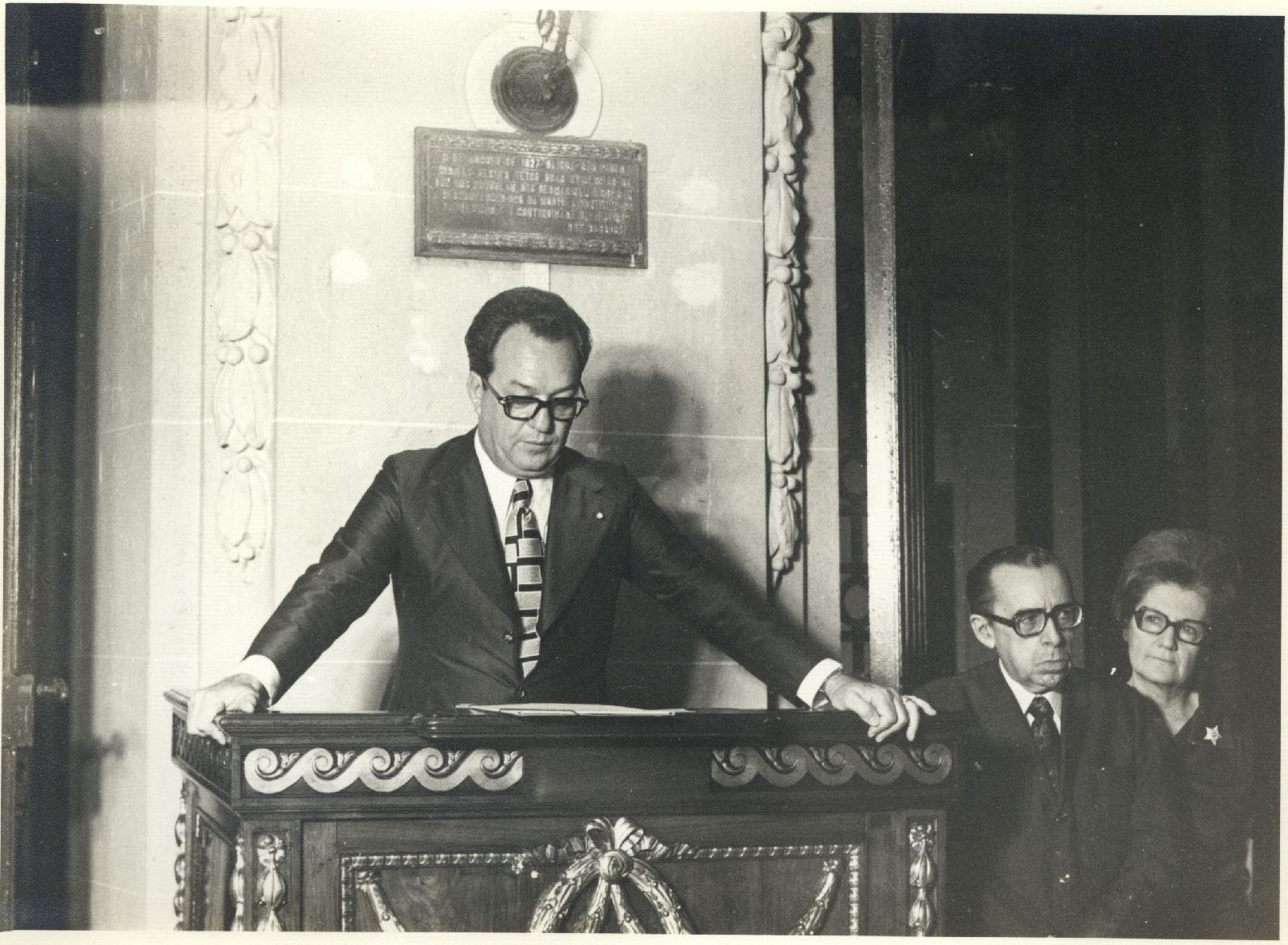 | Description: | Fotografia em preto e branco do busto do Reitor Marcionilo Lins em evento da Faculdade de Direito do Recife. |