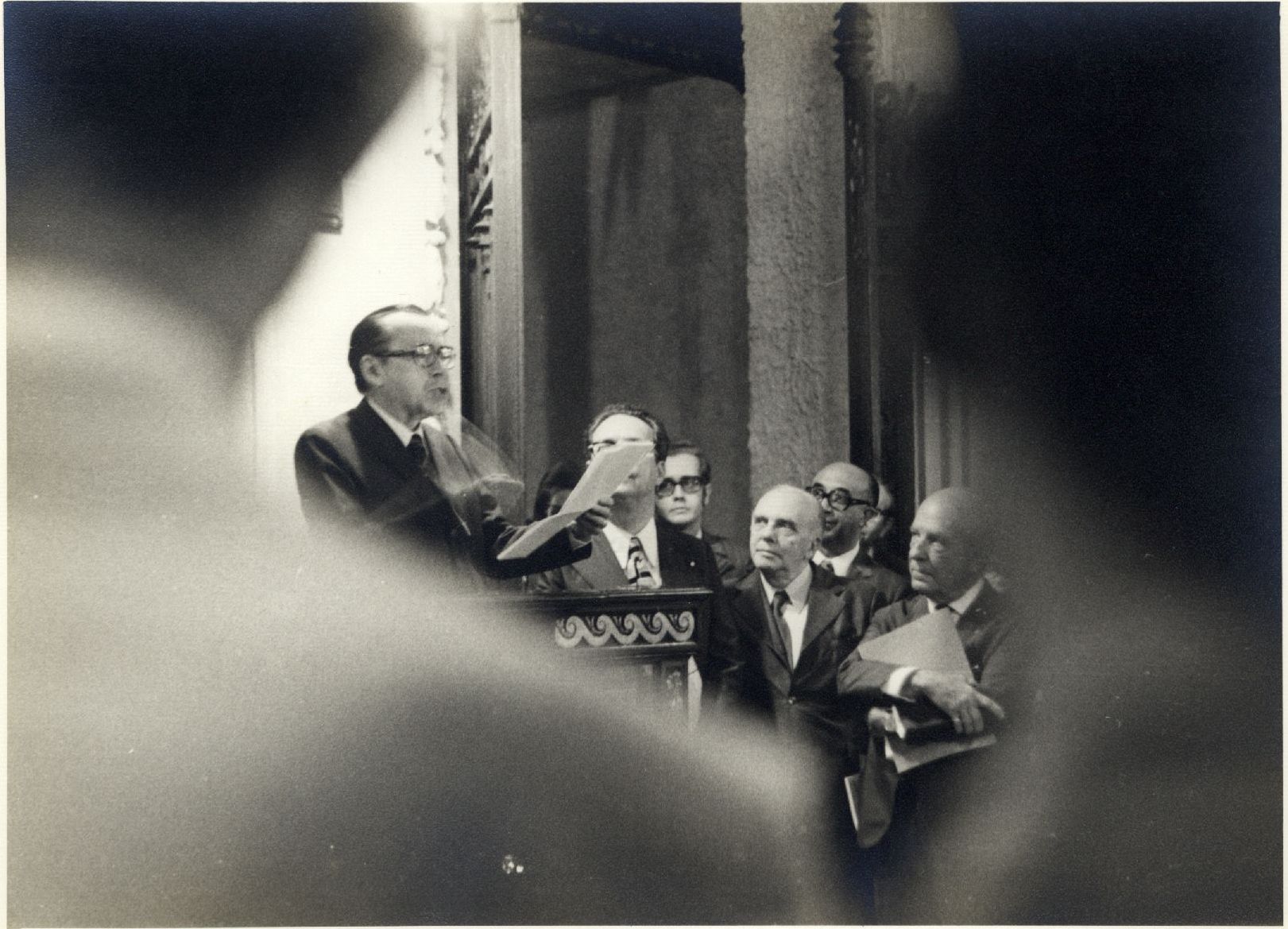 | Título : | Personalidade discursando em evento da Faculdade de Direito (2) |