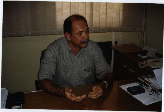 Description: Fotografia em cores onde é possível visualizar o Diretor do Complexo Prisional Professor Aníbal Bruno sentado à mesa. No verso da foto consta um adesivo da ASCOM com a seguinte informação: “Assessoria de Com. Social – UFPE; Nome: Direito; Evento/Pessoa: Anibal Bruno/ Diretor; Fotógrafo: Mila Targino; Nov 2001”.
