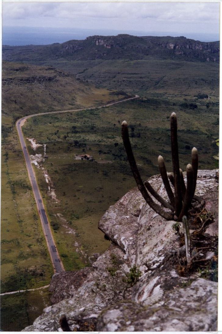 Descrição: | Registro em cores feito do alto de um morro, onde aparece um cacto morros, uma área verde a parte de uma pista. No verso das fotos consta um adesivo da ASCOM com as seguintes informações: “Assessoria de COM Social – UFPE; Nome: CFCH; Evento Pessoa: Chapada Diamantina; Fotógrafo: Bárbara Wagner”. |