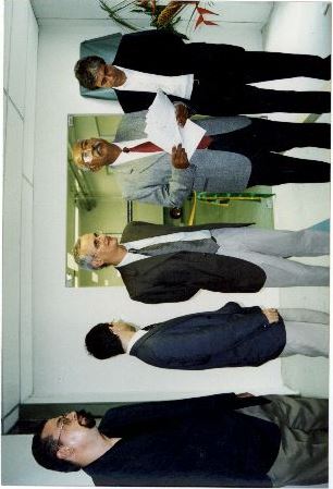 | Descripción : | Fotografia em cores onde aparecem cinco homens, dentre eles está o reitor Mozart Neves (último da esquerda para direita) na inauguração da Estação da Informação Virtus.No verso da foto consta um adesivo da ASCOM com a seguinte informação: “Assessoria de Com. Social – UFPE; Nome: BC; Evento/Pessoa: Virtus Inauguração; Fotógrafo: Mila Targino; Maio 2001”. |