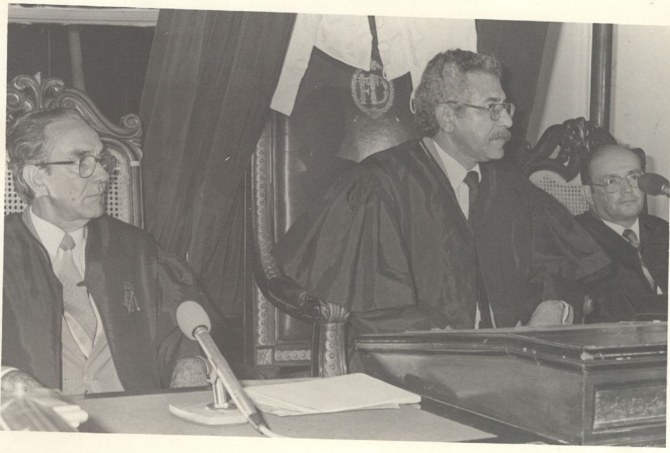 | Descrição: | Fotografia em preto e branco onde é possível visualizar o Reitor Edinaldo Bastos e personalidades ao seu lado compondo a mesa diretiva de um evento. No verso da foto consta a seguinte informação escrita à caneta: “Reitor Edinaldo Bastos; 88”. |