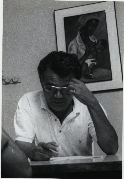 | Descripción : | Fotografia em preto e branco onde é possível visualizar uma personalidade identificada como Professor Lurildo Saraiva. No verso da foto consta a seguinte informação escrita à caneta: “Centro C. da Saúde; departamento de Nutrição; Foto: Maurício Coutinho; Maio/90. Prof. Lurildo Saraiva; Matéria sobre coração (crianças desnutridas)”. |