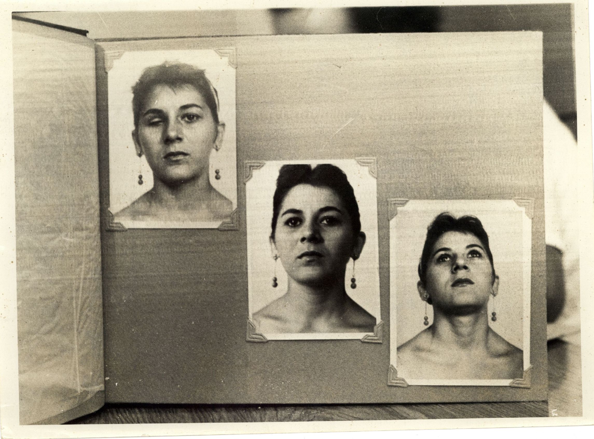 Título: Três fotografias de uma mulher não identificada para registro de suor buco facial