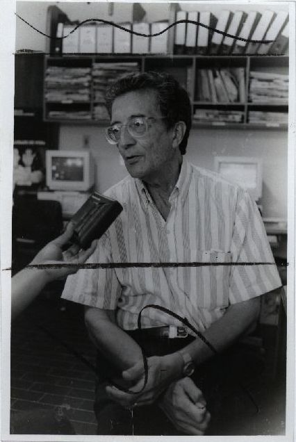 | Description: | Fotografia em preto e branco onde é possível visualizar Professor Francisco Gomes de Matos de Letras em momento de entrevista. No verso da foto consta um adesivo da ASCOM com a seguinte informação: "Assessoria de Comunicação Social – UFPE Nome: CAC – Letras; Evento/Pessoa: Prof. Francisco Gomes de Matos. Fotógrafo. No verso da foto consta a seguinte informação escrita à caneta: Francisco Gomes de Matos; 02-20; Larg: 10.8; Alt: 7.5”. |