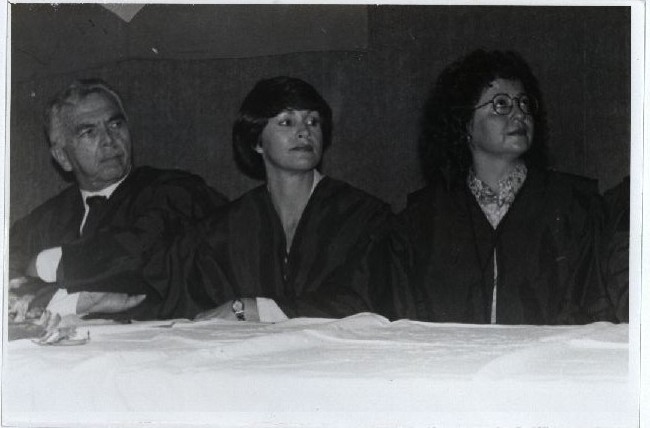 | Description: | Fotografia em preto e branco onde é possível visualizar Mesa diretiva na posse da Diretoria no auditório do CAC. No verso da foto consta a seguinte informação datilografada: “Centro de Artes e Comunicação; Assunto: Posse da Diretora; Mês: Maio/92; Fotógrafo: Passarinho”. |