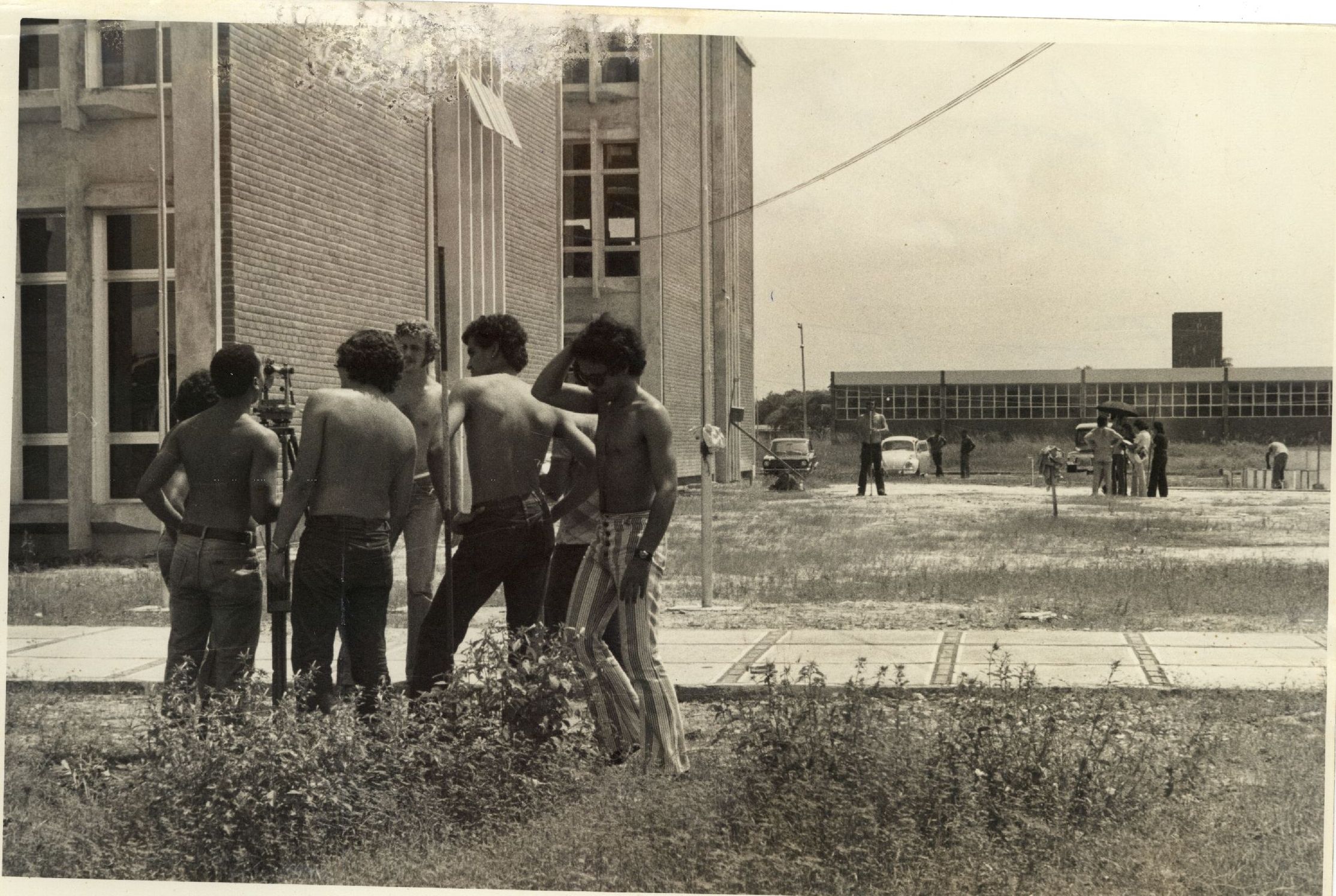 | Description: | Fotografia em preto e branco onde é possível visualizar alunos de engenharia recebendo aulas práticas de topografia no Campus Universitário. No verso da foto consta a seguinte informação escrita à caneta: “Alunos de engenharia recebendo aulas práticas no Campus Universitário (Topografia)”. |