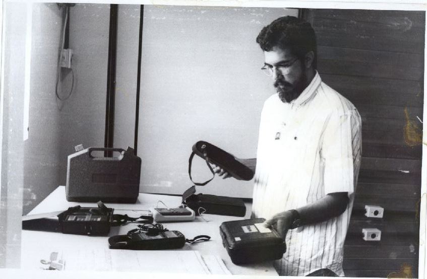 Description: Fotografia em preto e branco onde é possível visualizar Augusto Oliveira manuseando equipamento no Centro de Tecnologia. No verso da foto consta a seguinte informação escrita à caneta: “Augusto Oliveira; Centro de Tecnologia”. Há na coleção outras fotografias com conteúdo similar e encontram-se sob a indicação de localização CTG 4A, fotos 01; 02; 05; 508; 535; 536. O pesquisador que tiver interesse nestas fotografias deve entrar em contato com o Memorial Denis Bernardes através do e-mail: mdb@ufpe.br