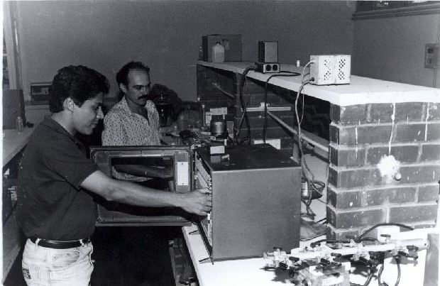 | Title: | Dois homens manuseando equipamentos em Laboratório de Energia Nuclear |