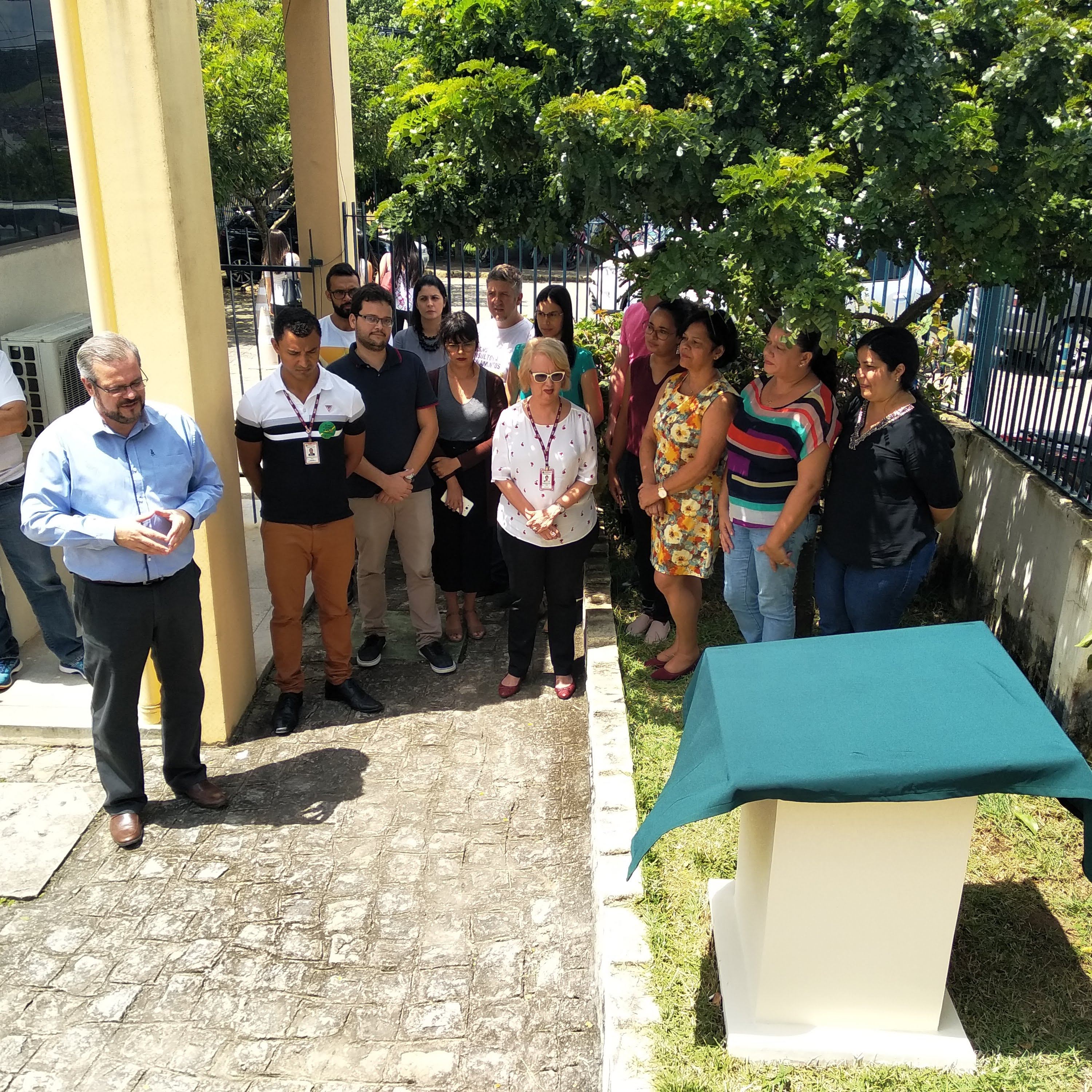 Descrição: Dentre os eventos de comemoração dos 10 anos do Centro Acadêmico de Vitória em 2016, estava prevista a solenidade de aposição de uma placa com os nomes de todos os servidores presentes na unidade desde a sua fundação até aquele ano. Entretanto, foi no dia 21 de agosto de 2019 que esse momento pode ser concretizado marcando a trajetória do CAV, A placa foi descerrada com a participação da Vice-reitora da UFPE (Florisbela Campos), do diretor do Centro (José Eduardo Garcia) e servidores.
