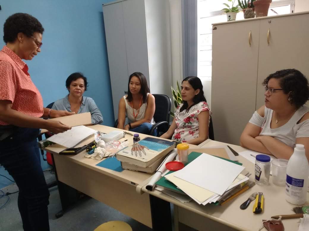 | Descripción : | Oficina de Encadernação de livros ministrada pela artesã Letícia Carneiro, foram 4 horas de atividades divididas em dois momentos um teórico e outro prático permitindo aos participantes criar e encadernar seu próprio livro. Da esquerda para direita: Leticia Carneiro, Giane da Paz, Franceline Silva, Amanda Paulino, Ana Lígia Santos. |