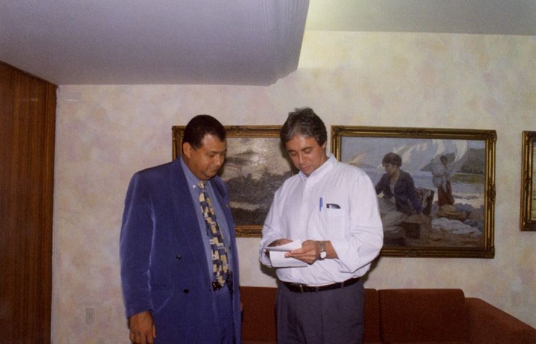 | Description: | Fotografia em cores do Reitor Mozart ao lado de uma pessoa não identificada. |