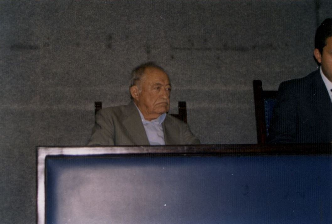 Descrição: Fotografia colorida do Governador Miguel Arraes em evento administrativo na reitoria da Universidade Federal de Pernambuco. Título da fotografia: Evento administrativo