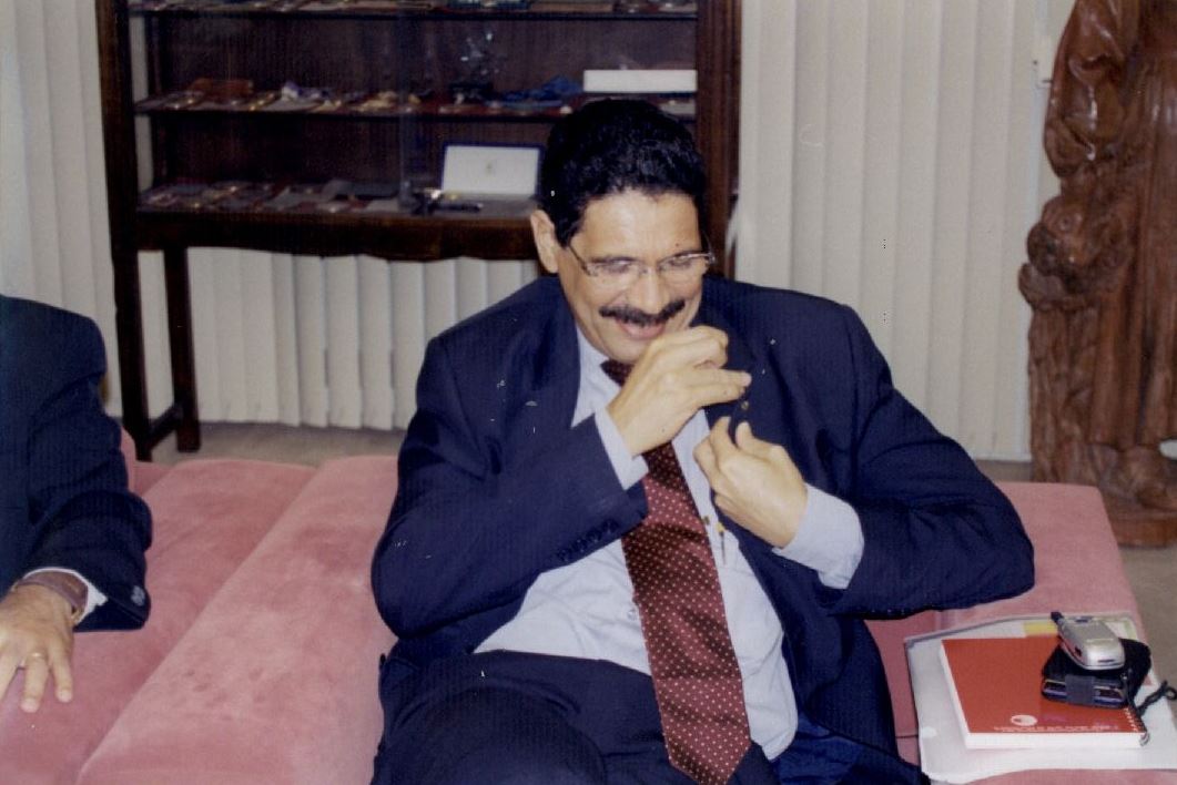 Descrição: Fotografia em cores do Governador Miguel Arraes em evento administrativo na reitoria da Universidade Federal de Pernambuco. Título da fotografia: Evento administrativo