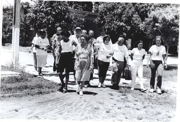 Descrição: | Fotografia e preto e branco onde é possível visualizar um grupo de pessoas da terceira idade sendo acompanhado por alguns jovens e adultos, em uma área não identificada do Campus UFPE. No verso da fotografia constam as seguintes informações "Nucelo de Ed. Física; 3ª Idade; 06.12.96; Fotógrafo Maurício Coutinho". |