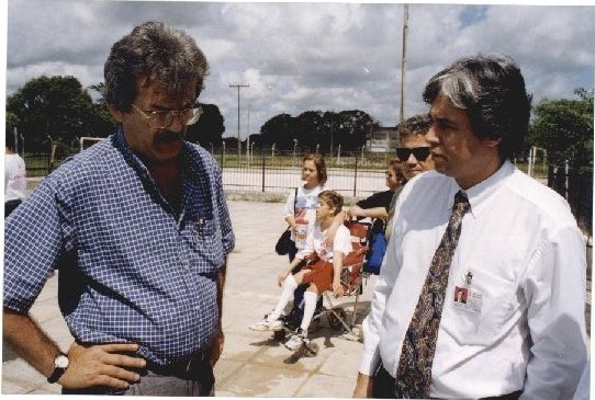 Descripción : Fotografia em cores onde é possível visualizar o Reitor Mozart Neves Ramos ao lado de uma personalidade não identificada. No verso da fotografia constam as seguintes informações “Filme 3384; Assessoria de COM SOCIAL – UFPE; Nome: Esportes p/ Comunidades; Evento/Pessoa: (Núc. Ed. Fís.); Fotógrafo: Maurício Coutinho”.