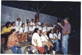 Descripción : | Fotografia em cores onde se tem uma vista de uma arquibancada, onde se encontram diversas pessoas sentadas e alguns cadeirantes em frente. Uma personalidade não identificada se encontra em momento de fala. |
