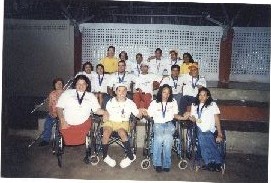 Descrição: | Fotografia em cores onde se tem uma vista de uma arquibancada, onde se encontram diversas pessoas sentadas e alguns cadeirantes em frente. |