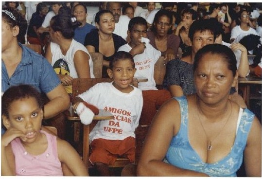 Descrição: | Fotografia em cores onde é possível visualizar diversas pessoas em um auditório, dentre elas dois jovens vestindo a camisa do projeto “Amigos especiais da UFPE”. No verso da fotografia constam as seguintes informações “Assessoria de COM SOCIAL – UFPE; Nome: Órgãos Suplementares; Evento/Pessoa: PRONID; Fotógrafo: Bárbara; “PRONID (Sugestão para foto – Legenda)”. |
