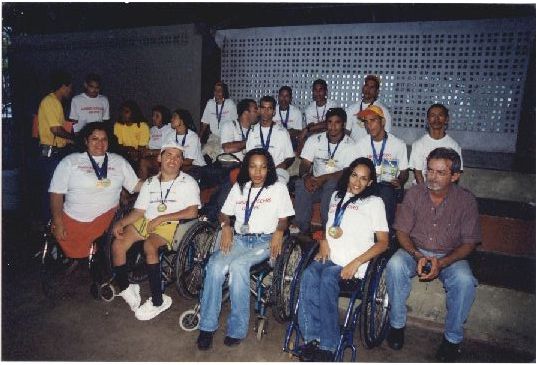 Descrição: | Fotografia em cores onde se tem uma vista de uma arquibancada, onde se encontram diversas pessoas sentadas e alguns cadeirantes em frente. No verso da fotografia constam as seguintes informações “Assessoria de COM SOCIAL – UFPE; Nome: NEFD - PRONID; Evento/Pessoa: Deficientes praticando esportes; Fotógrafo: Passarinho”. |