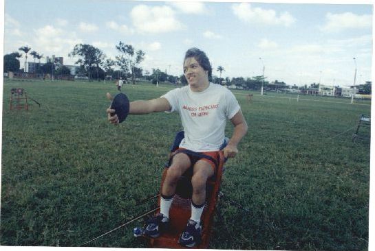 Título: | Homem cadeirante praticando lançamento de disco em Amigos Especiais da UFPE |