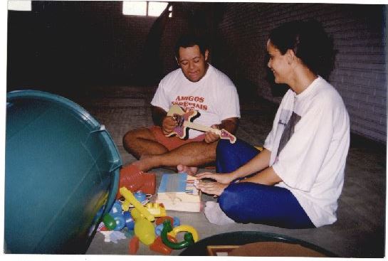 Descripción : | Fotografia em cores onde é possível visualizar um jovem com Síndrome de Down em momento de descontração, enquanto toca uma guitarra de brinquedo, junto a uma personalidade não identificada, no interior de um prédio do NEFD. No verso da fotografia constam as seguintes informações “Assessoria de COM SOCIAL – UFPE; Nome: NEFD - PRONID; Evento/Pessoa: Deficientes praticando esportes; Fotógrafo: Passarinho”. |