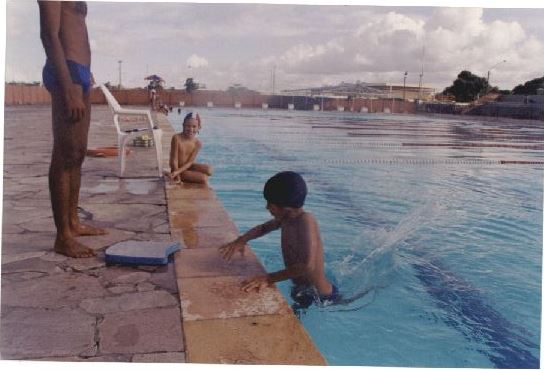 Descripción : | Fotografia em cores onde é possível visualizar, em destaque, uma criança dentro da piscina principal do NEFD; próximo a ele, fora da piscina e em pé, se encontra uma personalidade não identificada; na foto visualiza-se ainda uma segunda criança, esta sentada na borda da piscina. |