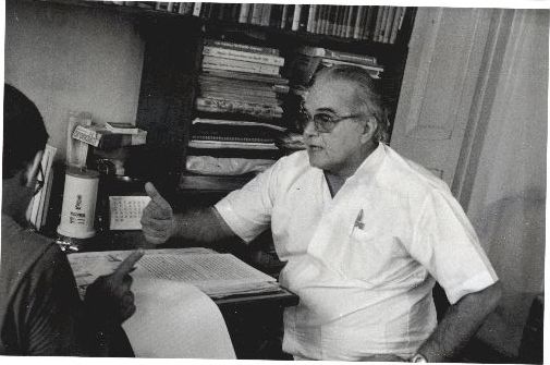 Descrição: | Fotografia em preto e branco onde é possível visualizar o Professor Edesio Lima conversando com uma personalidade não identificada. No verso das fotos consta a seguinte informação escrita a lápis: “Prof Edesio Lima; Mat. Filariose; E escrito à caneta: “1990”. |