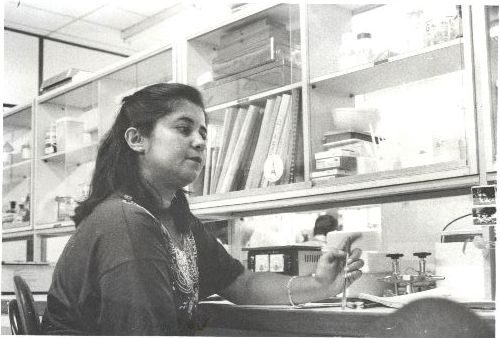 Descripción : | Fotografia em preto e branco onde é possível visualizar a Professora Amélia Maciel, sentada em frente a um balcão. No verso das fotos consta a seguinte informação escrita a lápis: “Prof Amélia Maciel, do Aggeu; Mat. Filariose; 1990”. |