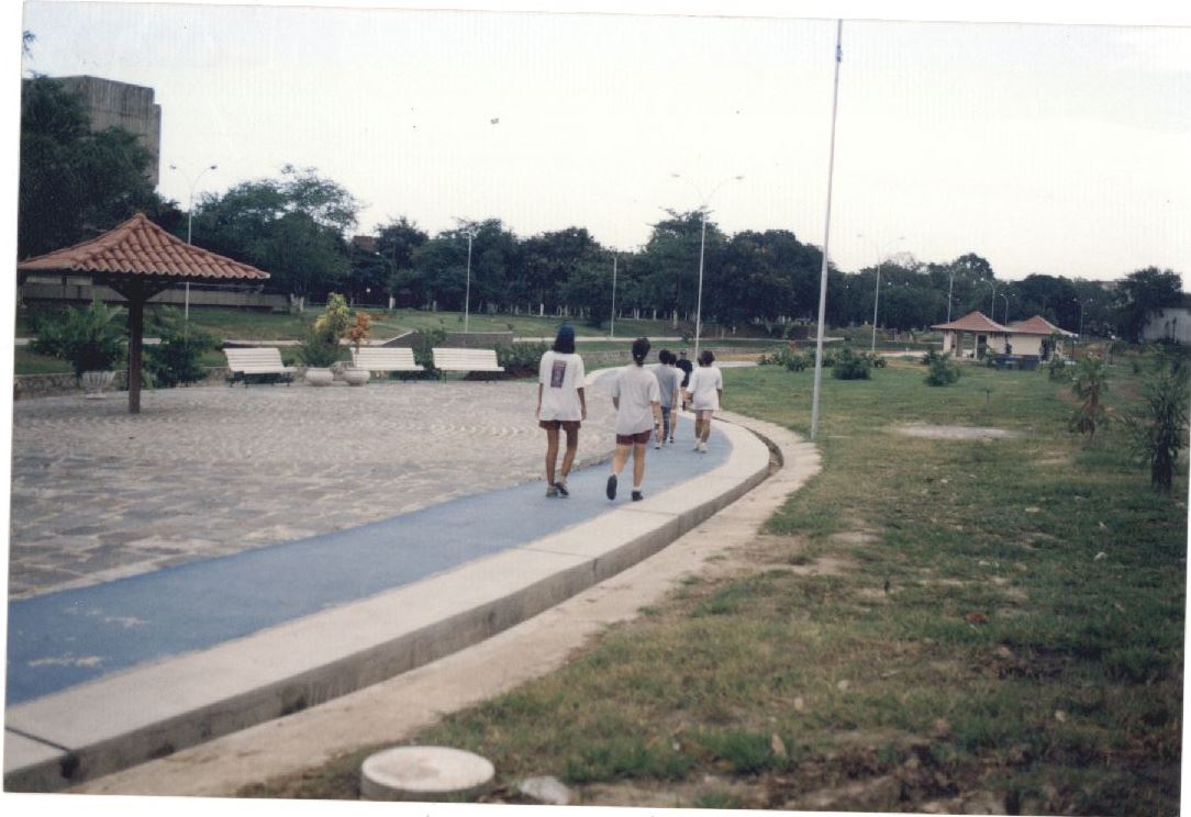 Descripción : | Fotografia em cores onde é possível visualizar pessoas caminhando na Pista de Cooper. |