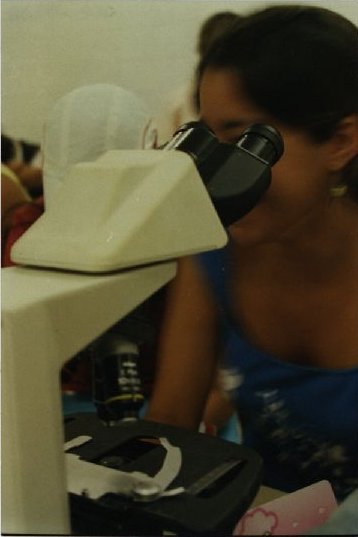 Descrição: | Fotografia em cores de aluna utilizando um microscópio em laboratório |