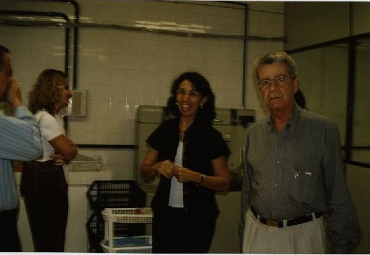 Descrição: Fotografia em cores onde é possível visualizar um grupo de pessoas no evento de entrega da reforma de laboratórios do CCB. Informações encontradas no verso da fotografia: "Entrega da reforma de laboratórios (CCB); Fotógrafo: Passarinho".
