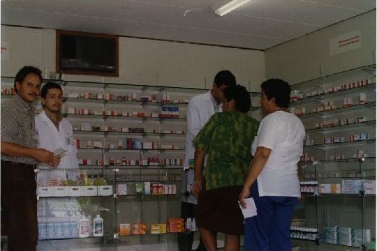 Descrição: | Fotografia em cores onde é possível visualizar três pessoas em momento de atendimento em uma farmácia. No verso da foto consta um adesivo da ASCOM com a seguinte informação: "Assessoria de Comunicação Social – UFPE Nome: 100 anos do Curso de Farmácia; Evento/Pessoa: Fotógrafo: Juliana Albuquerque”. |