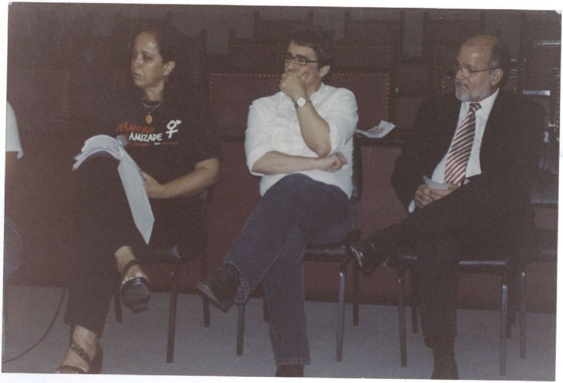 Descrição: Fotografia em cores onde é possível ver o Reitor Amaro Lins e outras personalidades em reunião sobre o filme "O céu é logo ali". No verso da foto consta um adesivo da ASCOM com a seguinte informação: “Assessoria de Com. Social - UFPE; Nome: Reunião do filme ' o ceu é logo ali '; Evento/pessoa; 02/10/07".